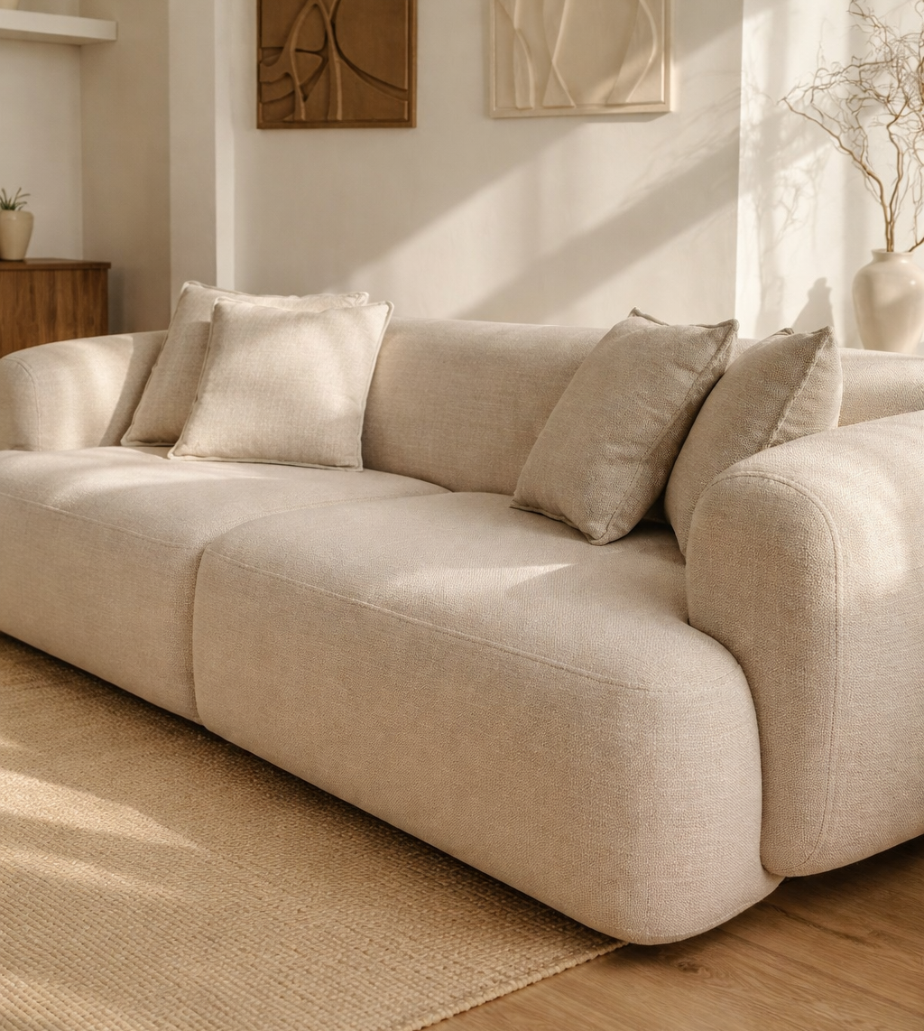 Organic Minimalist Aesthetic: The clean lines and rounded, armless-style bolsters create a calm, uncluttered look that fits perfectly in contemporary homes.