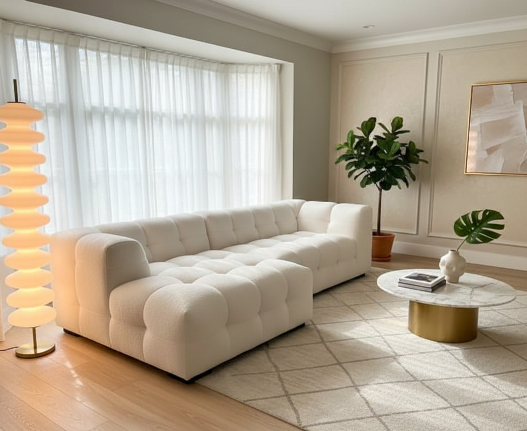 The Verona L Shape Sofa redefines luxury seating with its deep, sink-in comfort and bespoke modern design. Upholstered in premium, soft-touch fabric, this sofa is distinguished by its low profile and generously cushioned backrest, creating an inviting silhouette. The Verona’s modular design offers versatile seating arrangements, perfect for both intimate gatherings and lavish entertaining.